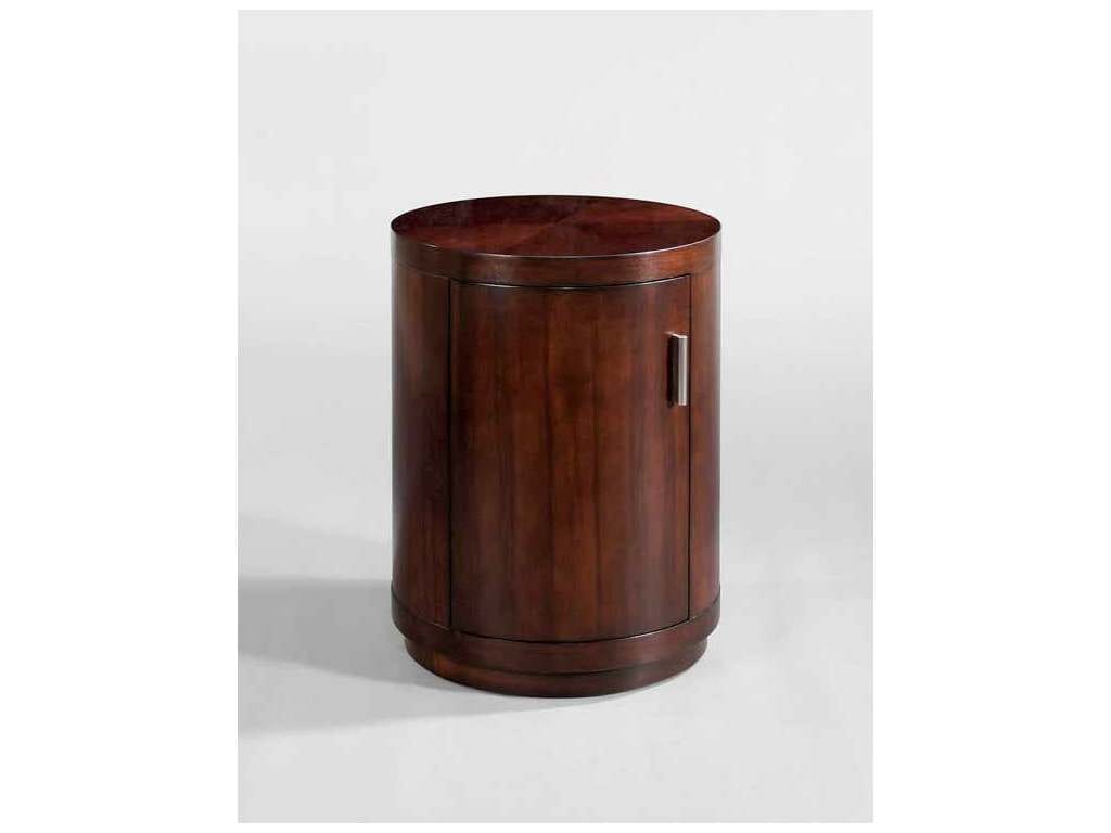 Product Description: Century Furniture 849-627L Milan Door Commode Left Facing - Figured veneers of American walnut (the tops) and satin walnut (the doors) enhance these right- and left-facing drum tables. Hardware finished in Soft Silver or Bronze. Available in a clear finish.