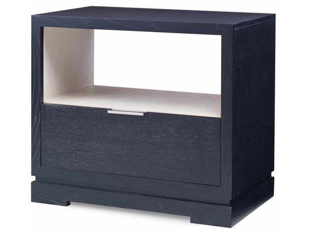 Product Description: Century Furniture C19-226 Corso Nightstand - Single drawer with soft-close drawer guides and Railroad Silver finish hardware below open storage.