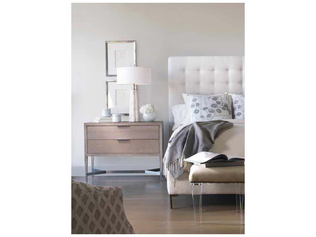 Product Description: Century Furniture C19-227 Corso Nightstand - Finished four sides. Two drawers with soft-close drawer guides and Brushed nickel finish hardware. Brushed Nickel finish metal base.