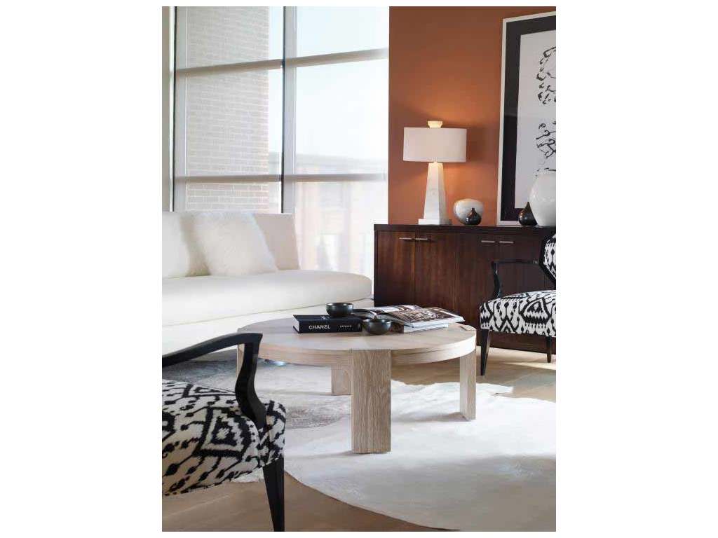Product Description: Century Furniture C19-605 Corso Cocktail Table - Cocktail table with a round top and sculptural base. Crafted from durable materials for longevity. Adds a touch of elegance to any room.