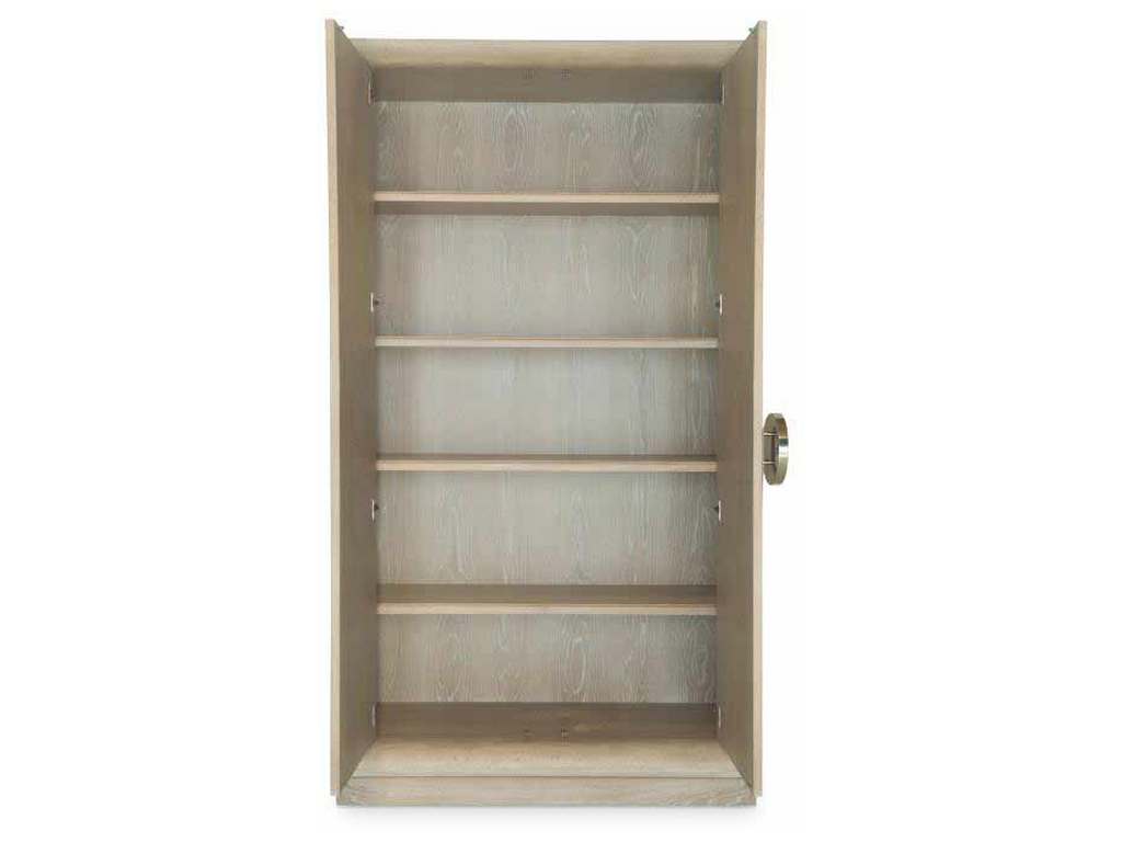 Product Description: Century Furniture C19-727 Corso Tall Door Cabinet - Behind two doors with Railroad Silver finish hardware are three adjustable shelves and one fixed shelf.