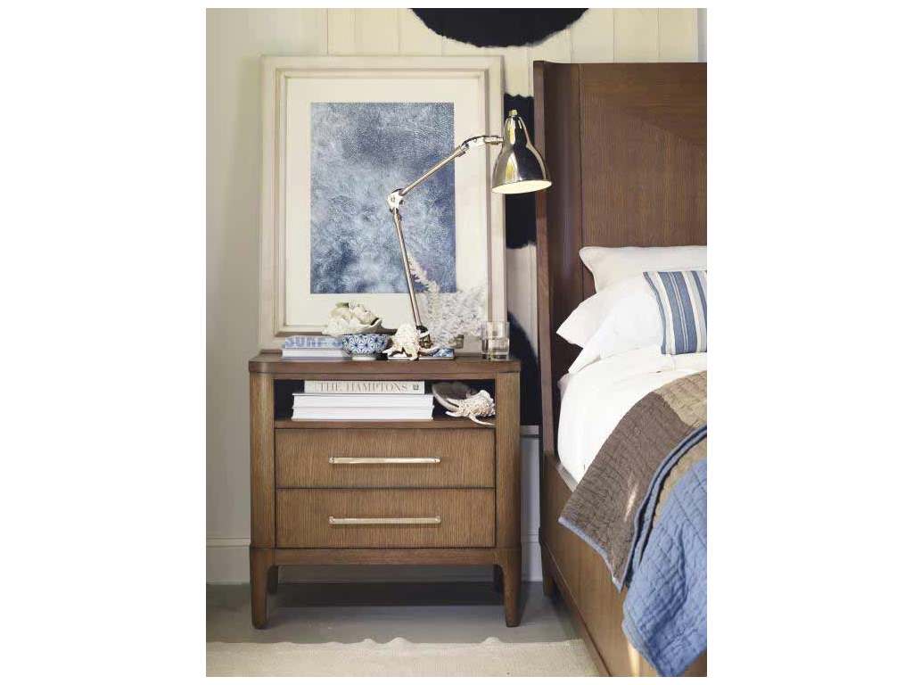 Product Description: Century Furniture C4H-222 Bowery Place Nightstand - C4H Bowery finish. Two drawers with polished stainless steel hardware and soft-close drawer guides below open shelf.