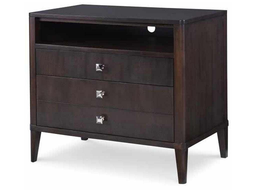 Product Description: Century Furniture C69-225 Aria Nightstand - Open shelf with wire access above two soft-close drawers with polished nickel finish hardware.