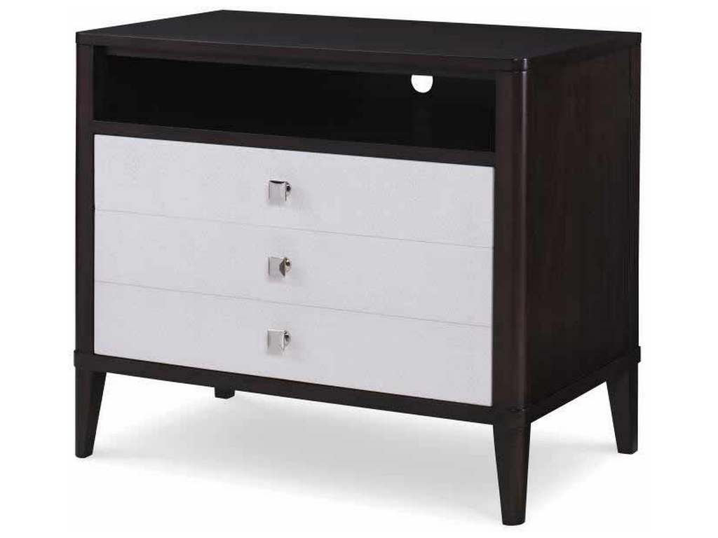 Product Description: Century Furniture C6C-225 Aria Nightstand - Open shelf with wire access above two soft-close drawers with polished nickel finish hardware.