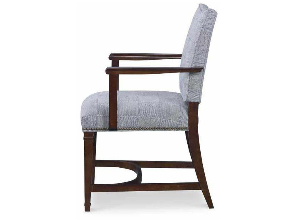 Product Description: Century Furniture C79-542 Madison Arm Chair - Timeless in design, this classic dining chair offers both comfort and style that compliments any dining table with upholstered seat and back, and exposed wood frame and arms with applied banding details on legs for scale and interest, and a pretty arched stretcher for comfort and function.