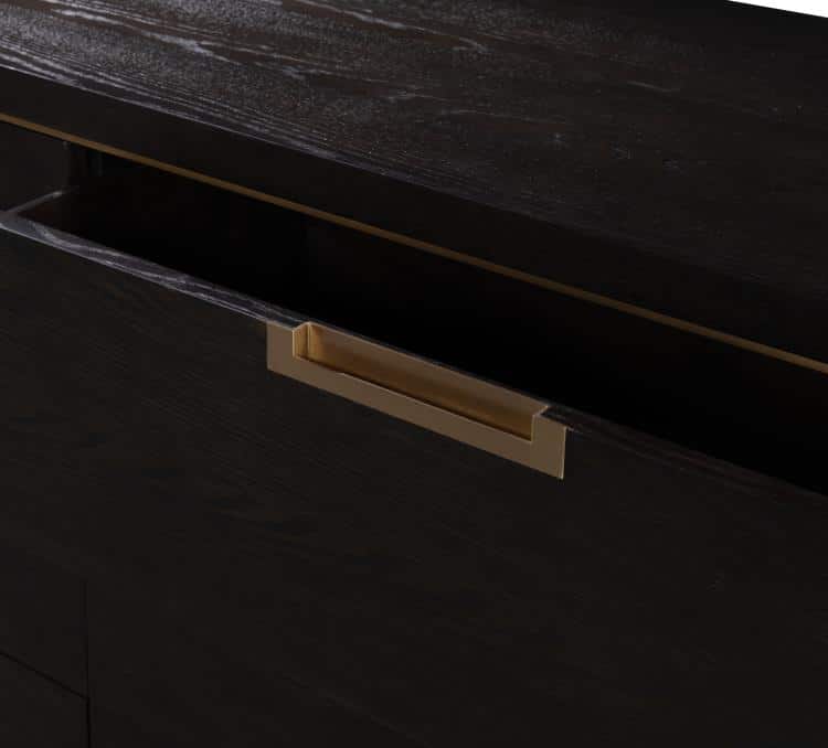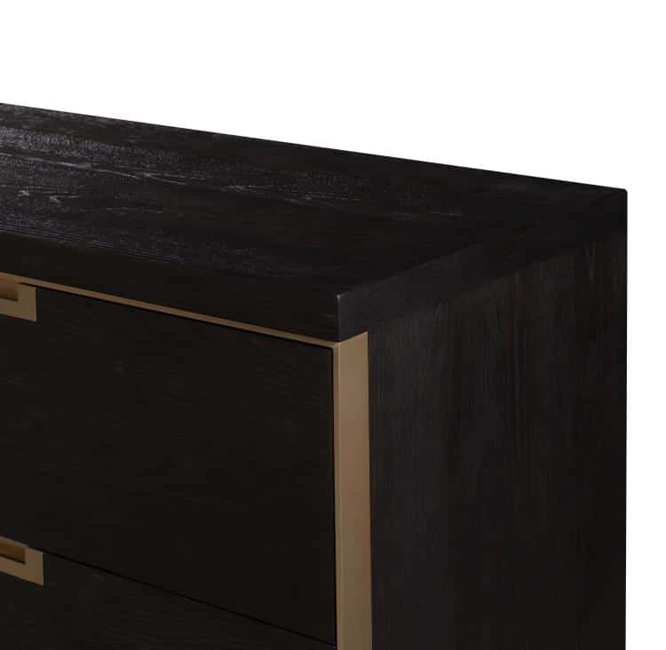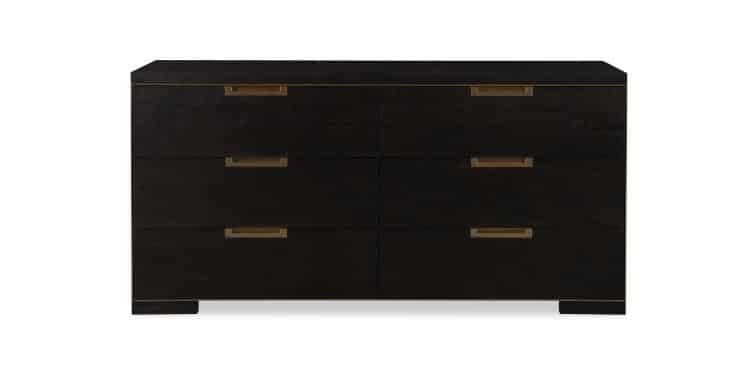 Product Description: Century Furniture CA3-205 Cadence Six Drawer Dresser Mocha - Striking, handcrafted storage piece that blends timeless design with modern functionality. Crafted from oak solids and narrow heart oak veneer, this six‑drawer dresser features antique brass‑trimmed, soft‑close drawers with recessed antique brass pulls, offering smooth operation and refined detail. Its rich mocha finish accentuates the wood grain and metal accents, giving the piece a sophisticated yet warm aesthetic that enhances bedroom settings.