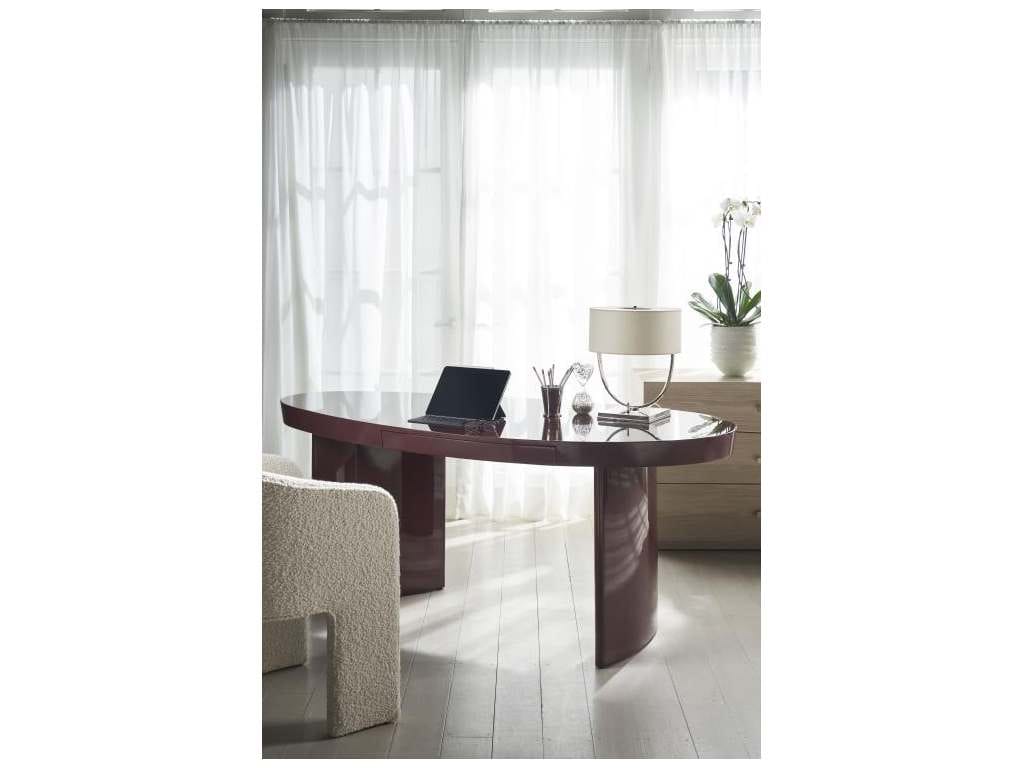 Product Description: Century Furniture CAD-761 Cadence Writing Desk - The softened, organic shape of the Cadence Writing Desk is both intriguing and sexy. Finished in a high gloss, Oxblood red lacquer finish, the desk features a single pull out drawer.