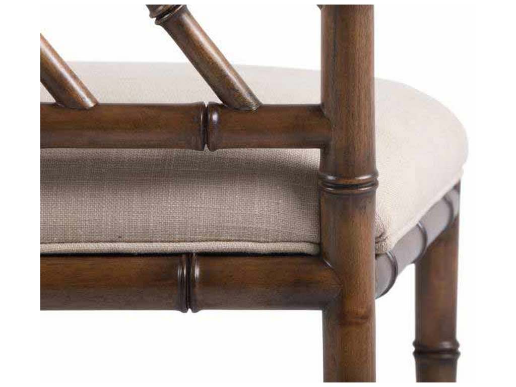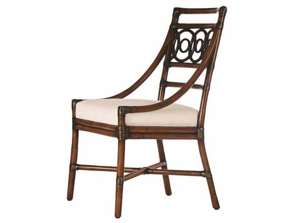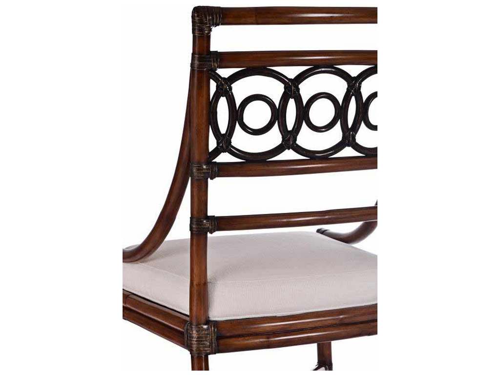 Product Description: Century Furniture CT2007S-FL Circles Side Chair Flax - Our Circles Side Chair features an interlocking circle design crafted from rattan framing with leather accents in honey and ebonized black two tone finish. Upholstered with a linen flax color upholstery. Also available as bar and counter stool.