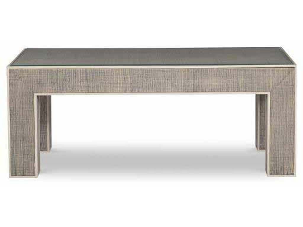 Product Description: Century Furniture CT5007-FG-PN Curate Newport Rectangular Coffee Table French Grey Peninsula - This modern parson style Cocktail table is crafted of Beech solids and wrapped in fine Saguran raffia with an exposed wood trim around all edges. The raffia is hand woven on the island of Bohol in the central Visayas region of the Philippines using the fibers of the Tipot palm tree and features a rich dimensional depth not found in lesser machine woven grasscloth. Table comes standard with a lay on glass top.