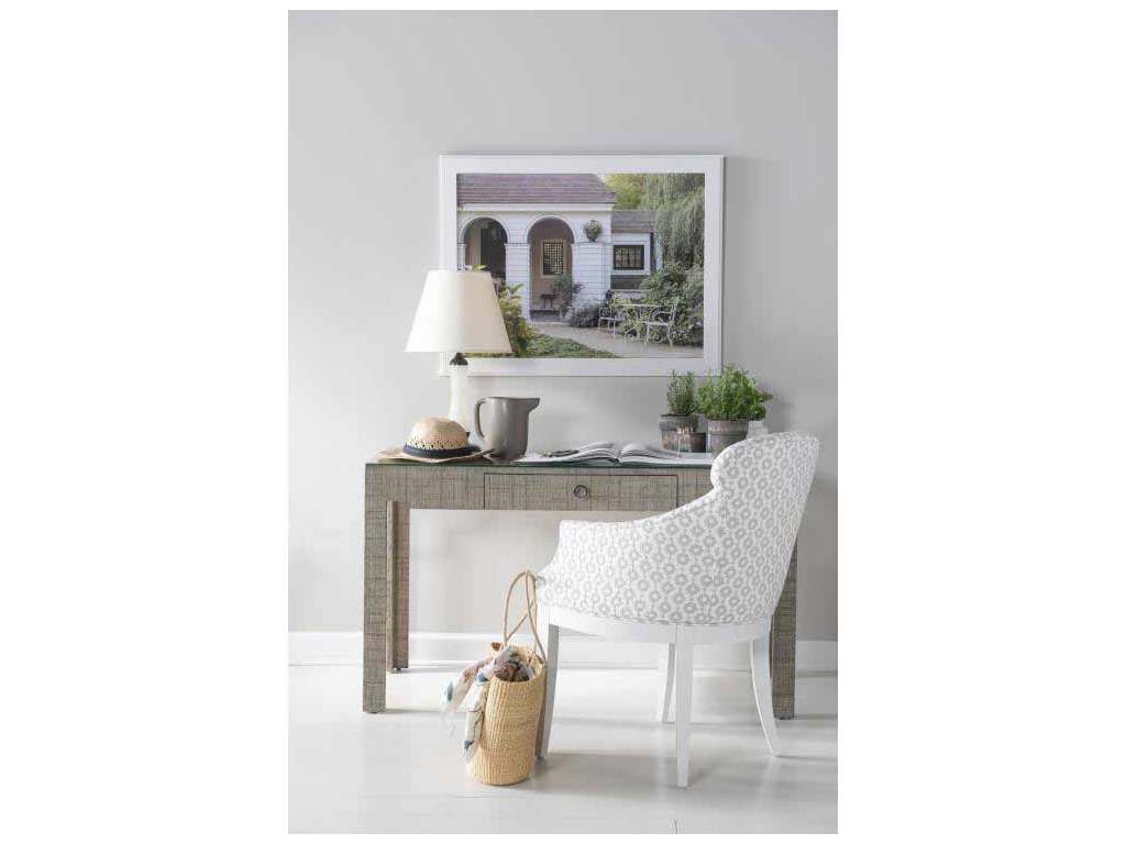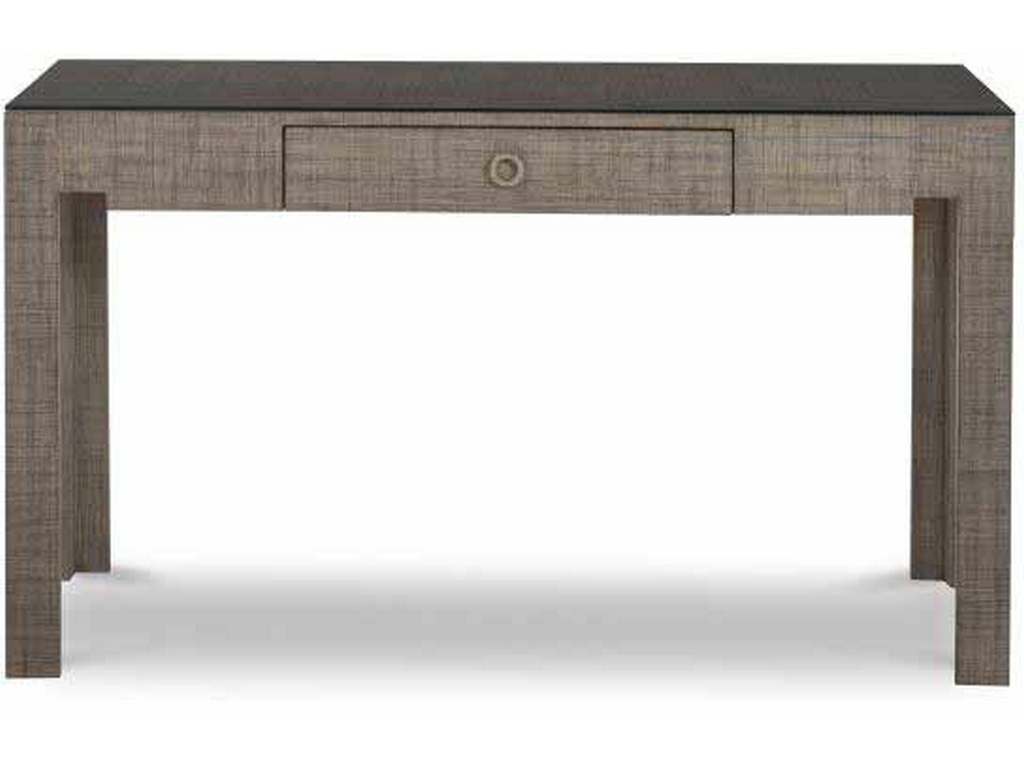 Product Description: Century Furniture CT5038-FG Charleston Desk French Grey - This modern desk with one soft close drawer and stepped up detail around each leg is wrapped in fine Saguran raffia, hand woven on the island of Bohol in the central Visayas region of the Philippines. Using the fibers of the Tipot palm tree this raffia features a rich dimensional depth not found in lesser machine woven grasscloth. Comes standard with a lay on glass top.