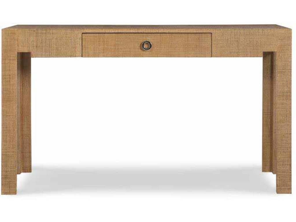 Product Description: Century Furniture CT5038-SD Charleston Desk Sand - This modern desk with one soft close drawer and stepped up detail around each leg is wrapped in fine Saguran raffia, hand woven on the island of Bohol in the central Visayas region of the Philippines. Using the fibers of the Tipot palm tree this raffia features a rich dimensional depth not found in lesser machine woven grasscloth. Comes standard with a lay on glass top.
