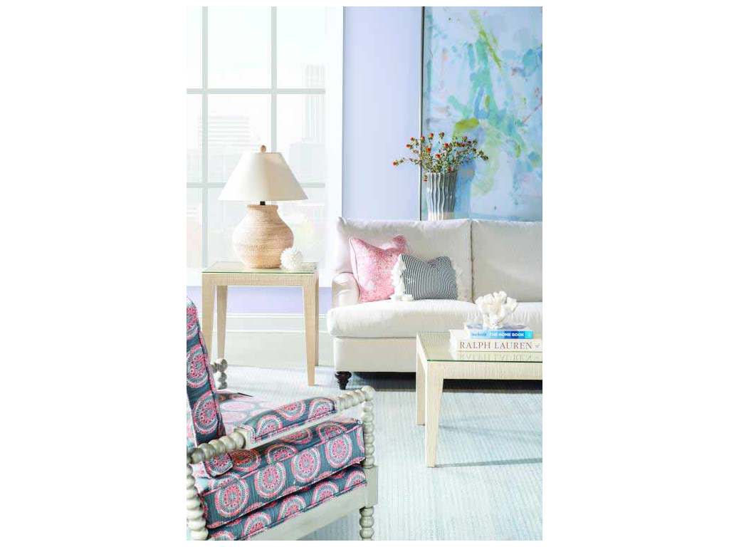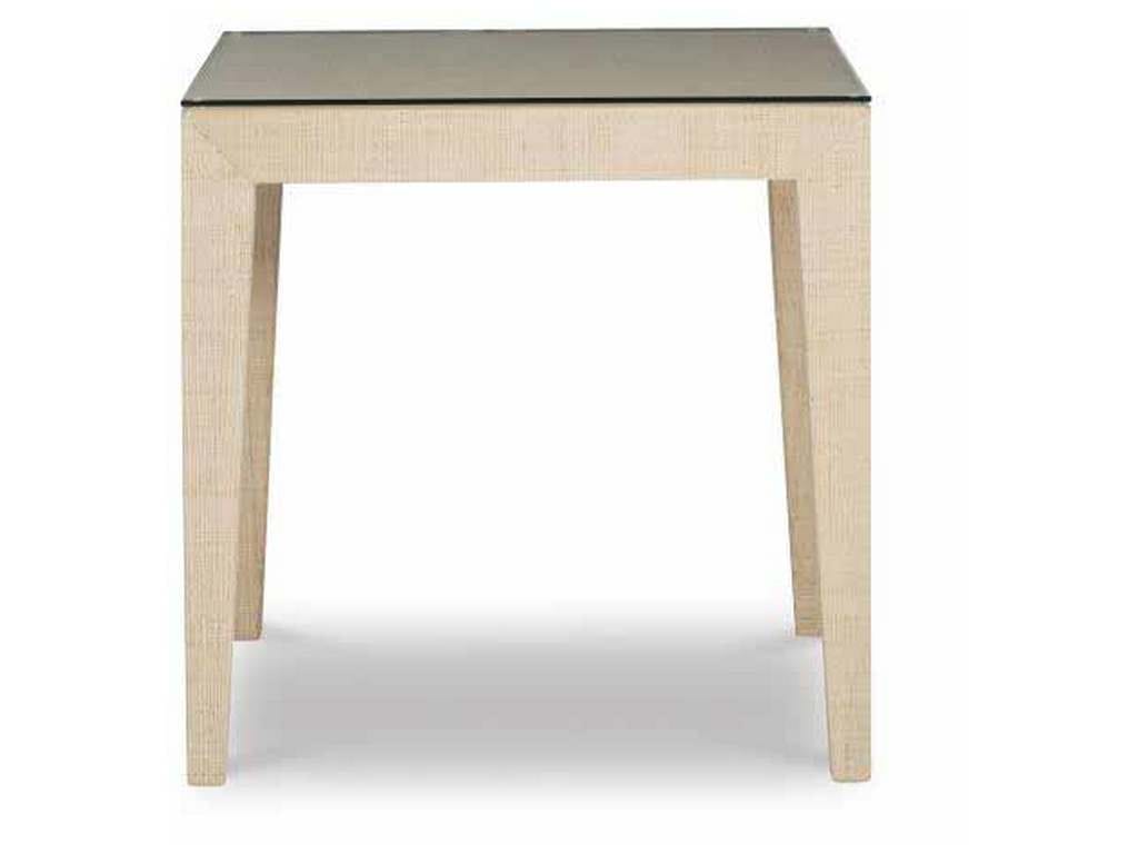 Product Description: Century Furniture CT5049-NT Santa Rosa Chairside Table Natural - This parson styled side table features nicely tapered legs wrapped in fine Saguran raffia, hand woven on the island of Bohol in the central Visayas region of the Philippines. Using the fibers of the Tipot palm tree this raffia features a rich dimensional depth not found in lesser machine woven grasscloth. Available in a Natural Finish. Comes standard with a lay on glass top.