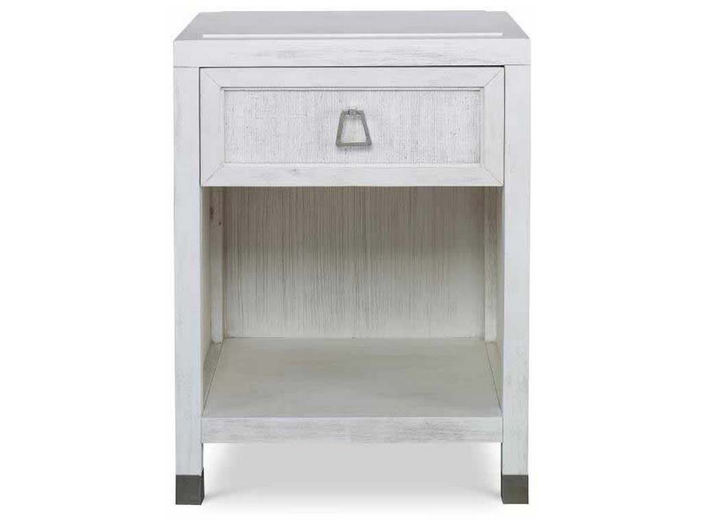 Product Description: Century Furniture CT6004-CN Atlas Single Drawer Nightstand - A refined bedside staple that brings transitional elegance and practical storage to your bedroom. Finished in a soft off-white with refined polished nickel hardware and ferrules, this nightstand echoes the sophisticated details of the Atlas dresser in a more compact form. Its single drawer provides discreet storage while the clean lines and neutral palette make it easy to pair with a variety styles.