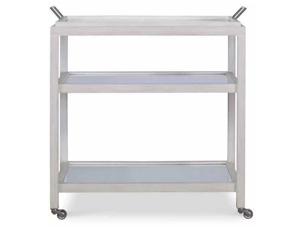 Product Description: Century Furniture CT6011-CN Mandalay Bar Cart - White - The Mandalay bar cart is a clean, functional entertainment piece. Polished nickel casters give this bar cart movability while two fixed shelves featuring mirrored insets and one removable top mirrored tray with nickel handles give it plenty of storage capacity for all of your barware and serving pieces.