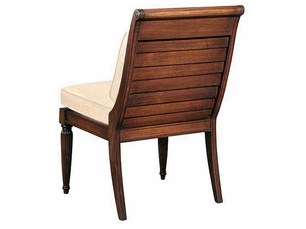 Product Description: Century Furniture D11-51 Archipelago Dining Side Chair - Distinctive design featuring authentic British and Dutch Colonial plantation shutter back styling. Details include turned and reeded legs, V-grooving and rosettes. Sweeping back leg complements the Gondola-style and contoured upper back of the chair.