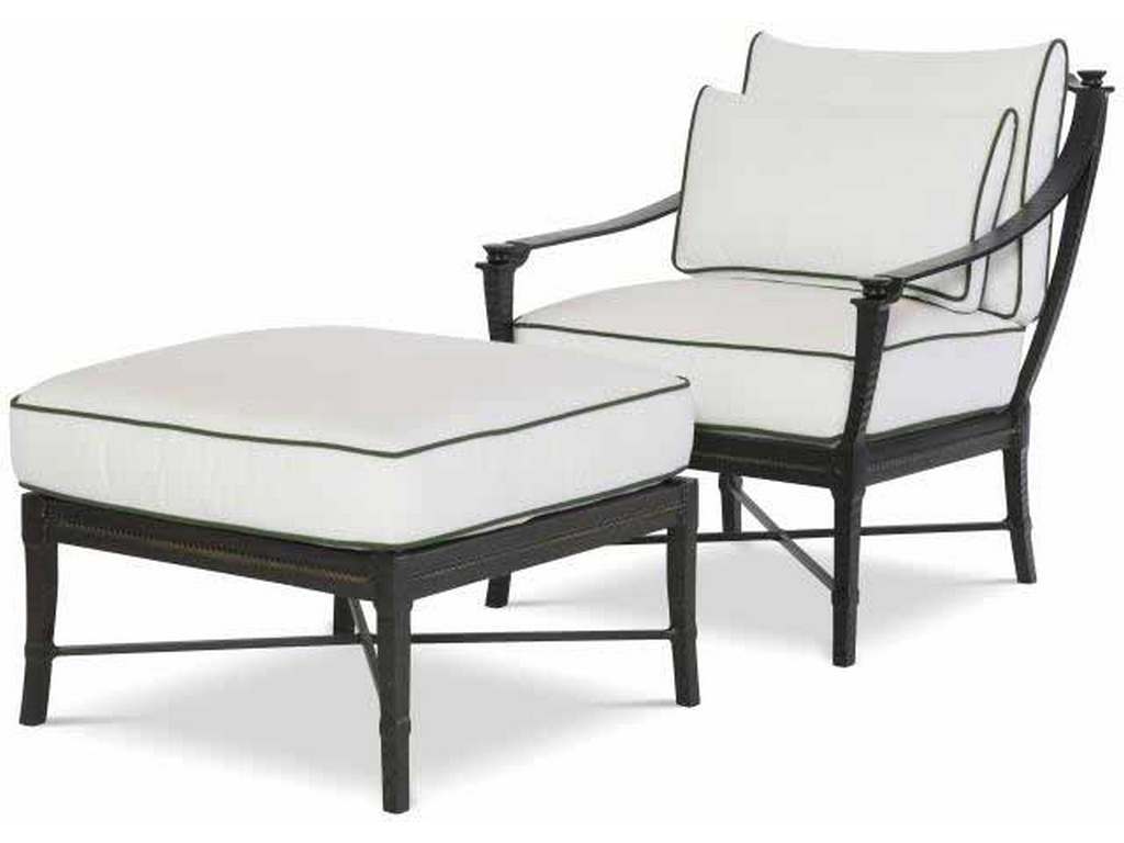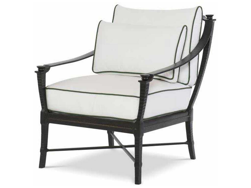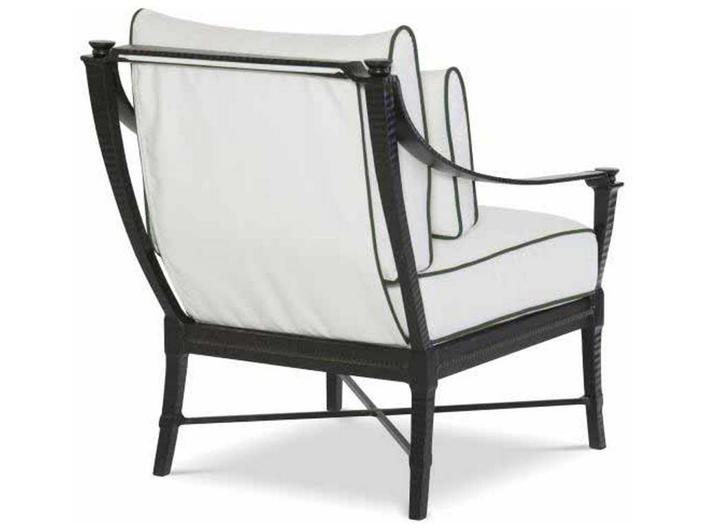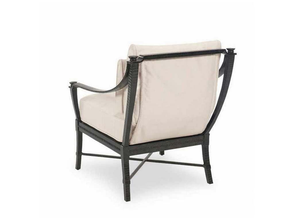 Product Description: Century Furniture D12-14-1 Andalusia Lounge Chair - Classic Spanish-Mediterranean styling. Saber detailing and decorative fob accents featured on all pieces. Sling fabric back is swagged into gondola-style design with decorative trim details. Sand-cast, aluminum frames feature a hand forged look of classic architectural ironwork and decorative balustrades. Finished in Cordoba- a durable, weather-resistant, multistep antique powder coat. Driluxe cushions on all seating are constructed of a water-repellent cover surrounding a high-resiliency foam core and wrapped with 100% polyester fiber, which is compliant with CAL 117 flame retardant standards.