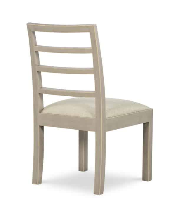 Product Description: Century Furniture AE-CCU-3164S-F2 Dara Side Chair Modern French Grey & Taupe - Finished in a rich inky lacquer with golden edging or a favorite soft grey-green with cream band. These chairs have a kind of clean honest form with an ever so simple Chinoiserie-influenced modern painted finish.