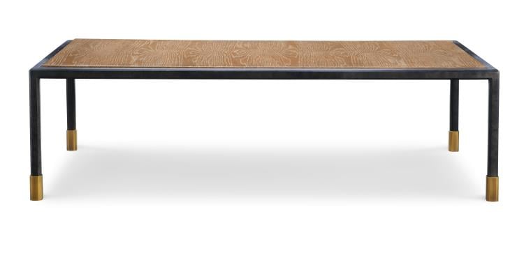 Product Description: Century Furniture AE9-617-3 Jennings Cocktail Table Oak - "The new Jennings Table and Console Collection has grown out of the hexagon faceted Danish modern iron frame on my daybed. That base with its elegant brass foot seemed so perfect to make Coffee, Side and Console Tables with a great selection of glass, oak and walnut tops and shelves. As always for the wood veneers, each panel is carefully sized and matched. " -Thomas O'Brien