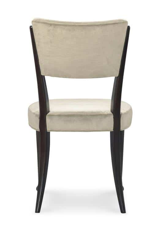 Product Description: Century Furniture C7-CC9-3165S Rae Dining Side Chair - Our new Rae Dining Chair is a rare mix of style and versatility. Beautifully tapered legs culminating in a delicate pad foot is a finely crafted detail. The tapered and flared back supports inset upholstery that floats within the frame. Its shapely seat is generously proportioned to provide comfort for such a graceful chair. The elegant silhouette makes it a standout piece for transitional and classic spaces.