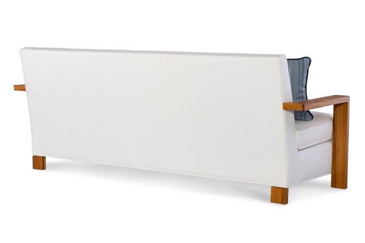 Product Description: Century Furniture C7-D88-3027 Otto Outdoor Sofa - We've thoughtfully adapted the Carrier and Company Otto chair as an outdoor sofa. With the same bold, architectural lines as the original, this piece is upholstered tightly for greater comfort. A solid teak frame in a natural finish showcases the woodgrain beautifully.