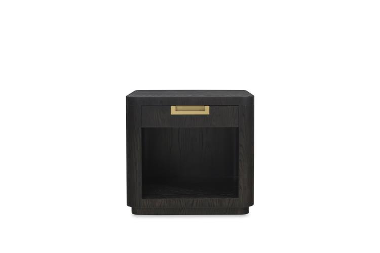 Product Description: Century Furniture CA3-624 Cadence Lamp Table Mocha - Finished in a rich Mocha hue, this lamp table is constructed from oak solids and veneers and features a single soft-close drawer with open storage below which is perfect for stowing essentials while keeping surfaces tidy. The transitional design is accented with antique brass hardware and finished on all sides, making it an elegant choice beside sofas or chairs in traditional to contemporary interiors.