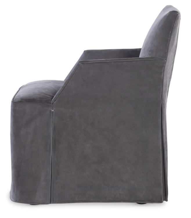 Product Description: Century Furniture TS-CC9-3180-6SK Stefano Skirted Chair - The European inspired dining or club chair, with waterfall arm and tight seat is characterized by its smooth, flowing lines and stitch detail at the pleats, reflects a modern design aesthetic that emphasizes sleek forms and subtle craftsmanship. This style draws inspiration from mid-century modern design, known for its minimalist approach and attention to detail, while incorporating contemporary elements. Available in any Century fabric or COM.