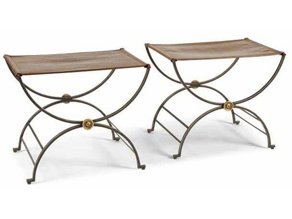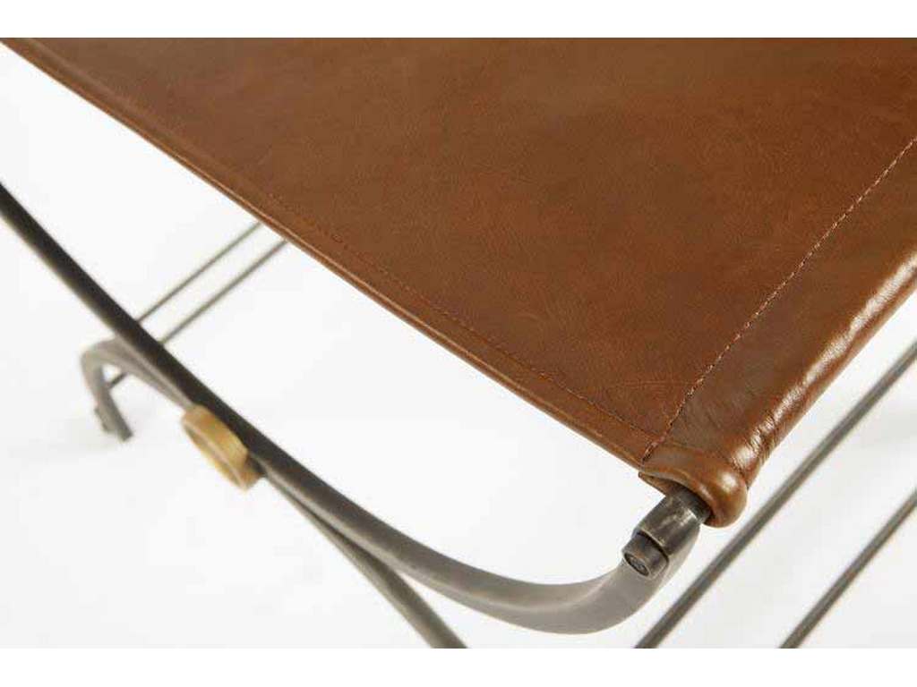 Product Description: Century Furniture MN2116 Monarch Niles Bench With Leather Seat - The Niles Bench can be paired at the foot of a bed, in front of a sofa or warm fireplace. It also can work as an ottoman in front of your favorite chair. The base is constructed of a x-based square tubed metal frame that is centered with a brass rosette. The top is upholstered in a rustic chocolate leather.