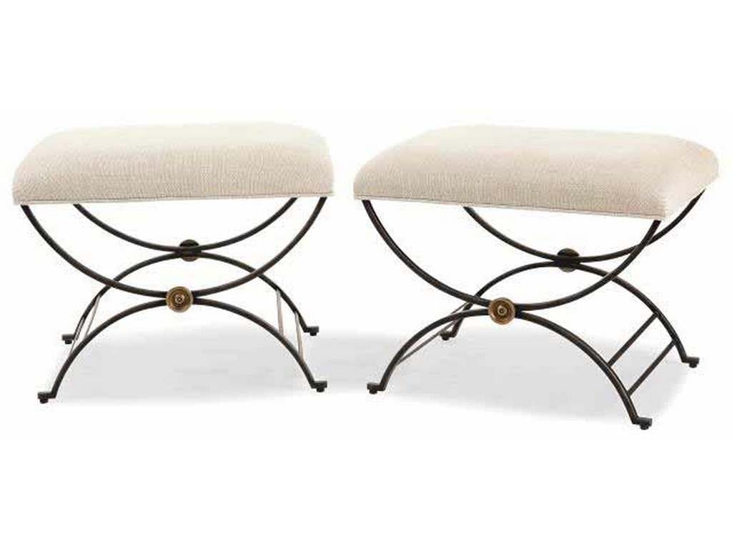 Product Description: Century Furniture MN2117 Niles Bench With Fabric Seat - The Niles Bench can be paired at the foot of a bed, in front of a sofa or warm fireplace. It also can work as an ottoman in front of your favorite chair. The base is constructed of a x-based square tubed metal frame that is centered with a brass rosette. The top is upholstered in natural textured linen.