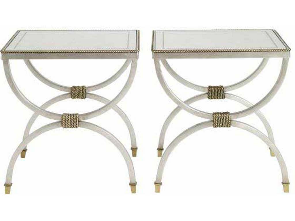 Product Description: Century Furniture MN5469 Jacqueline Bunching Cocktail Table - Inspired by today's beautiful mixed metal jewelry the Jacqueline is a silver leafed cocktail accented with a eglomise glass top, delicate gold leaf roping and tapered feet. TWO TABLES SHOWN: It can be used as a single table in front of a settee or smaller sofa, or as a pair or multiples in a larger living room.