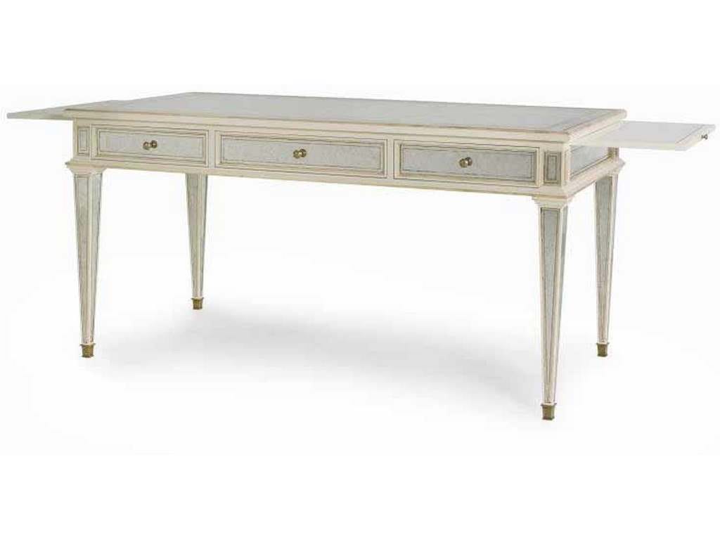 Product Description: Century Furniture MN5519 Jenna Desk - A classically designed piece the Jenna desk features a warm ivory finish and eglomise top and detailing. Three drawers and pull out trays on either side ensure that it is not just pretty, but functional as well, making it ideal for today's high style home offices.
