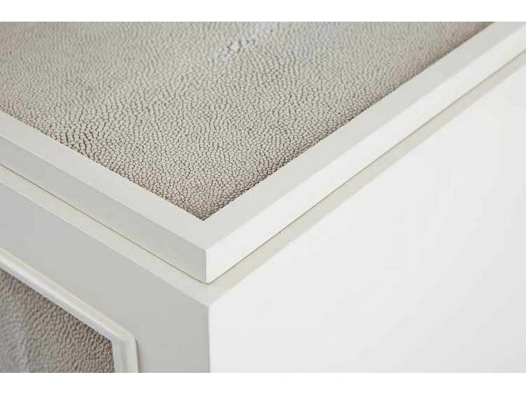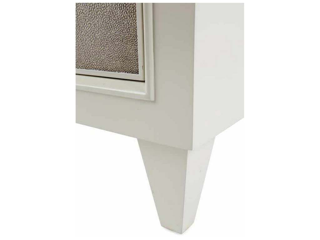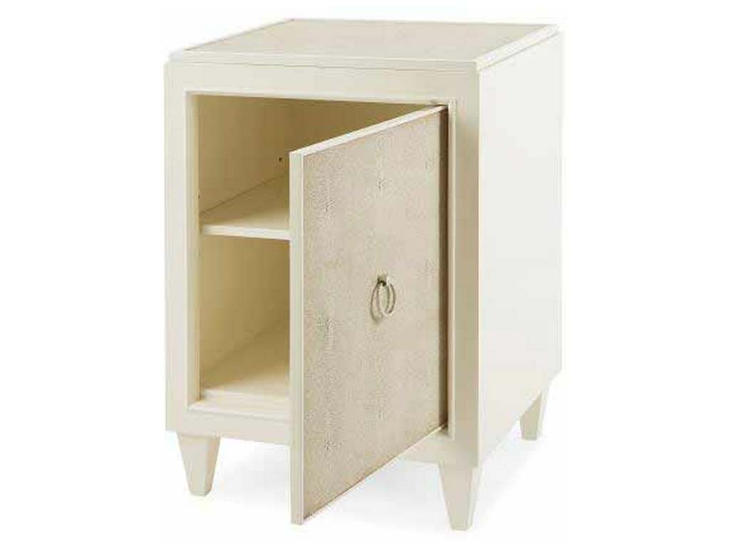 Product Description: Century Furniture MN5560 Taylor Door Nightstand - The Taylor Nightstand is finished in a cream colored lacquer and accented with cream and taupe colored faux shagreen top and door front. Tapered legs, raised moldings and a large nickel ring pull make Taylor a glamorous choice beside a bed.