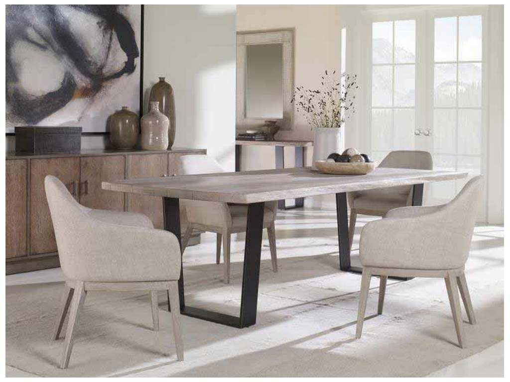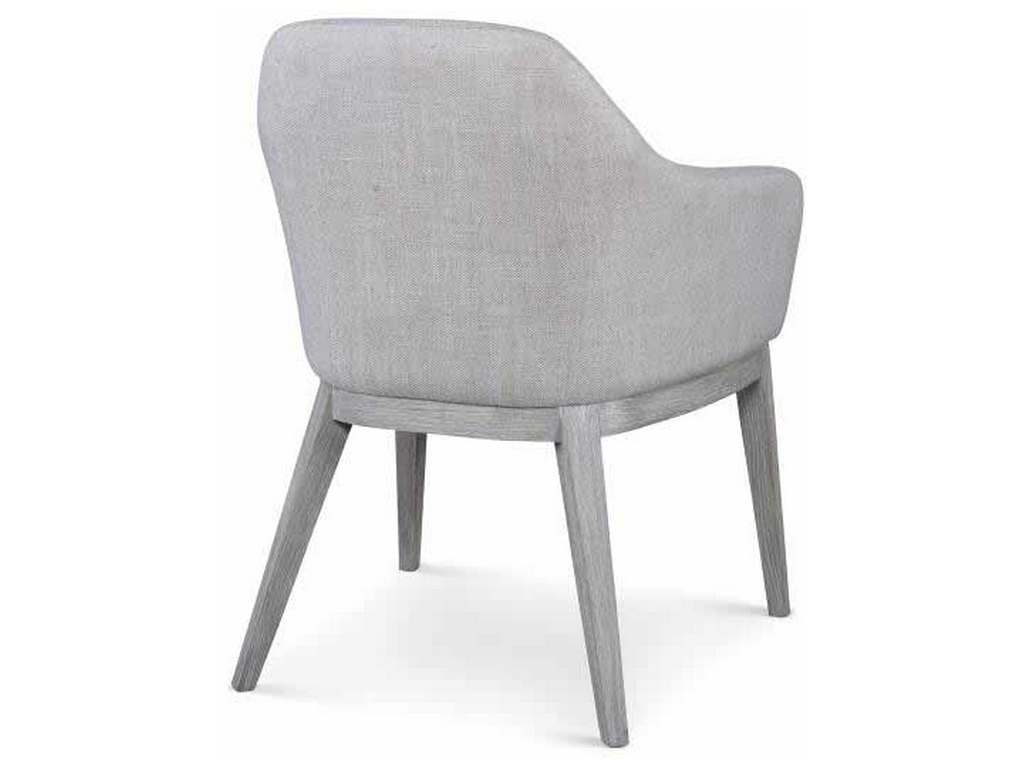 Product Description: Century Furniture MN5817 Copeland Dining Arm Chair - The softened edges and rounded back of our Copeland Dining Arm Chair give it comfort and transitional style making it a beautiful addition as a dining or office chair. Finished in a light grey oak finish and upholstered in our neutral textured linen.