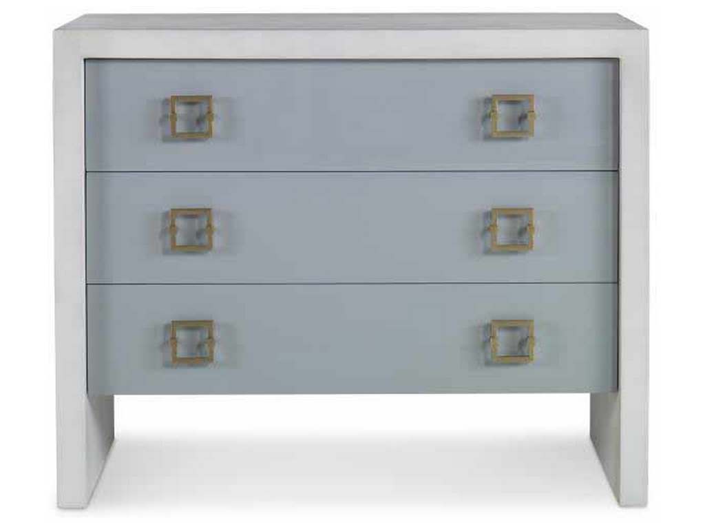 Product Description: Century Furniture MN5840 Liza Drawer Chest - The Liza Drawer Chest is a modernized Parson form finished in an off-white textured concrete contrasted with a sleek gloss lacquer finish on the three drawer fronts which feature square brushed-brass handle hardware.