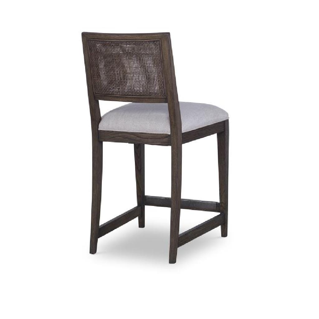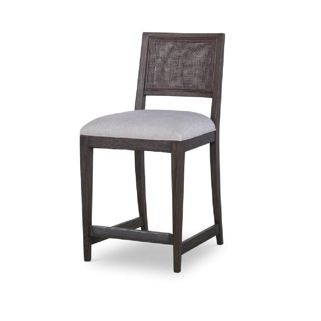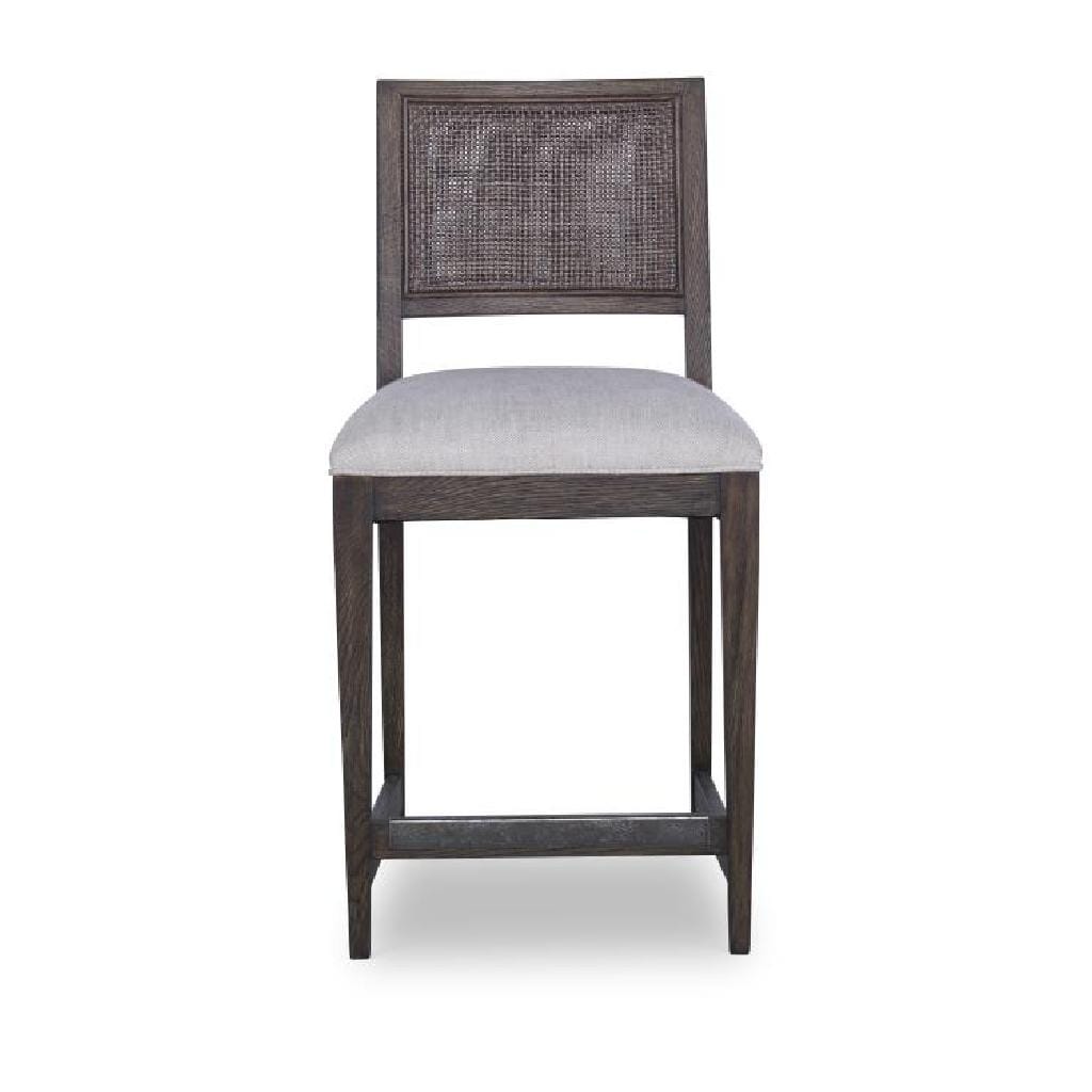 Product Description: Century Furniture MN5855C Parker Counter Stool - With it's classic use of cane woven in a modern way, the Parker counter stool is a fresh traditional that fits with nearly any setting. Crafted of Oak solids and cane in a dark brown finish with textured linen upholstery. Available only as shown. Also available as Side and Arm dining chairs.