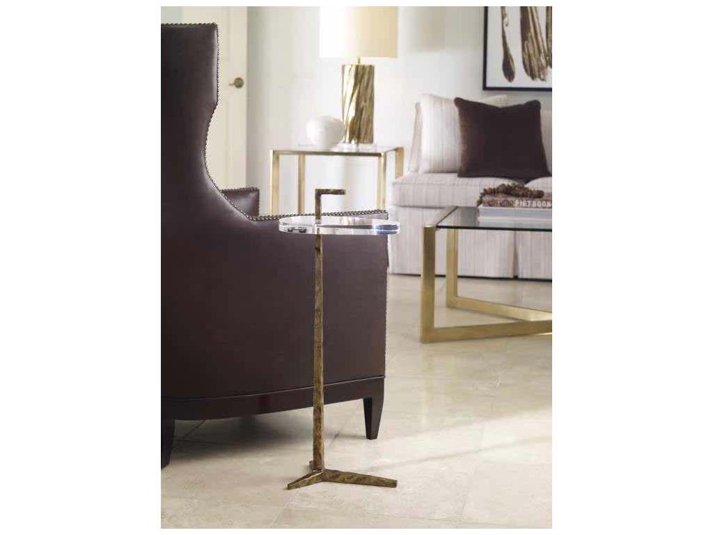 Product Description: Century Furniture SF5744 Christian Accent Table - Antique Bronze finish metal base with acrylic top. Designed by Pride Sasser.