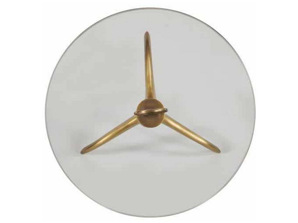 Product Description: Century Furniture SF6006 Wilton Accent Table - The Wilton Accent Table is crafted in brass finished metal with a singular post that pierces the clear glass top and ends in a circular pull design. Perfect beside a club chair or wing chair as a surface for a coffee cup or glass.