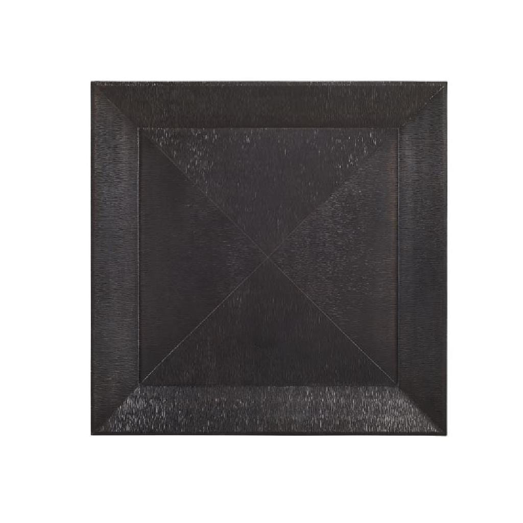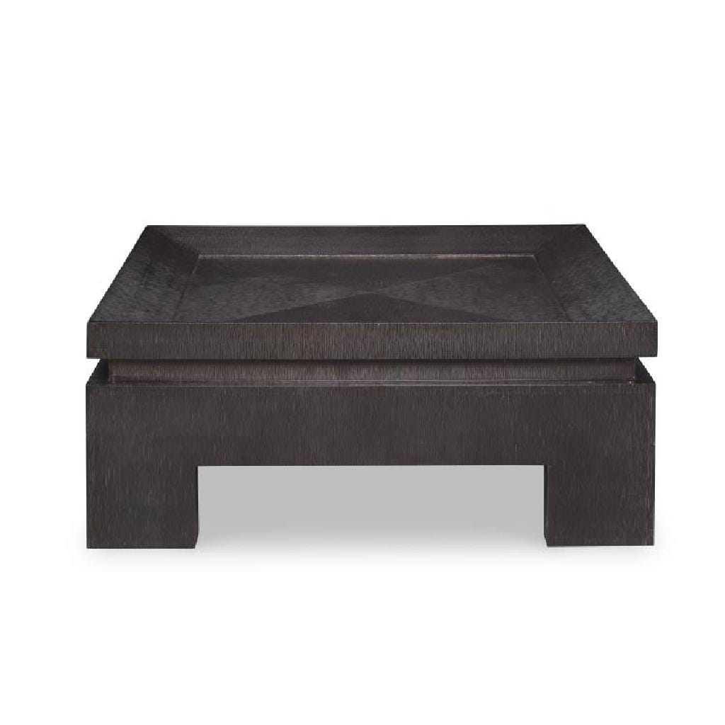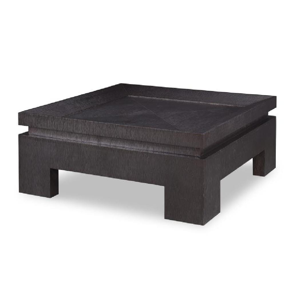 Product Description: Century Furniture SF6025 Keenan Coffee Table - The Keenan cocktail table is completely clad in an oil rubbed bronze with unique hand hammered texture. The top has a heavy bevel edge detail that frames a top with a reverse diamond design.