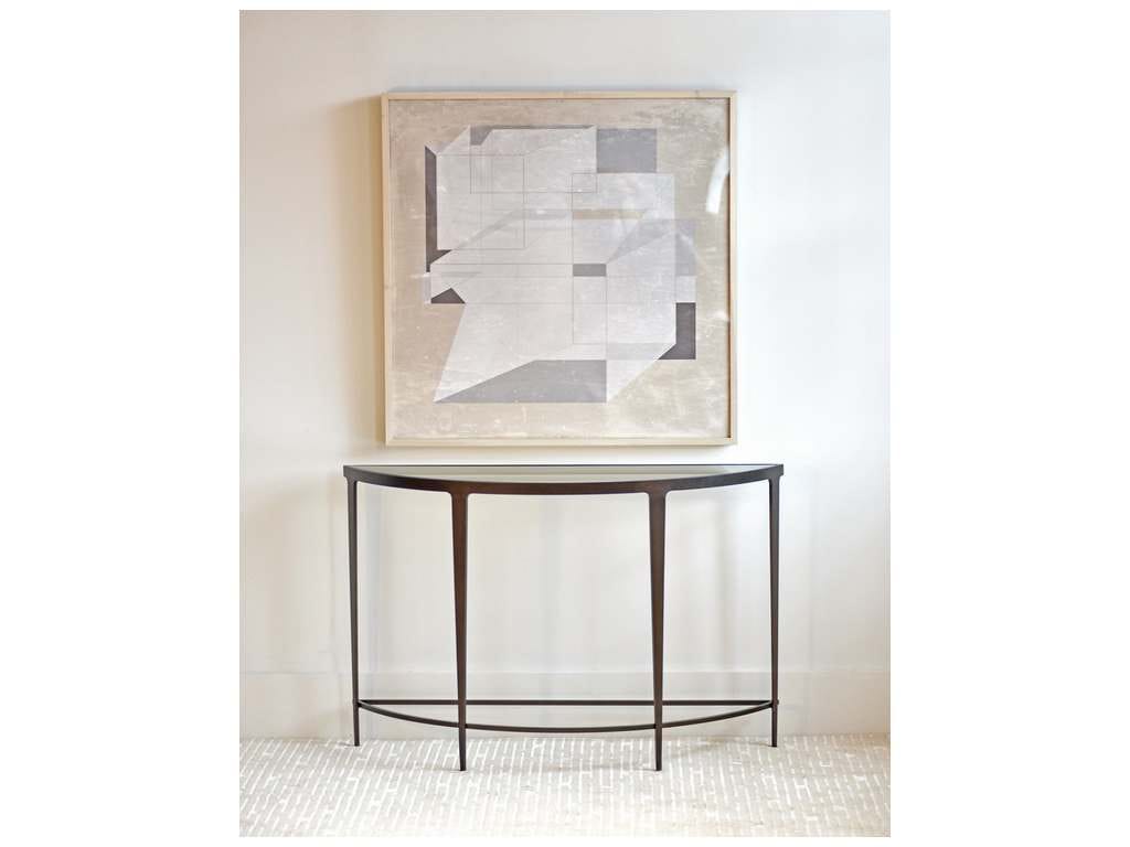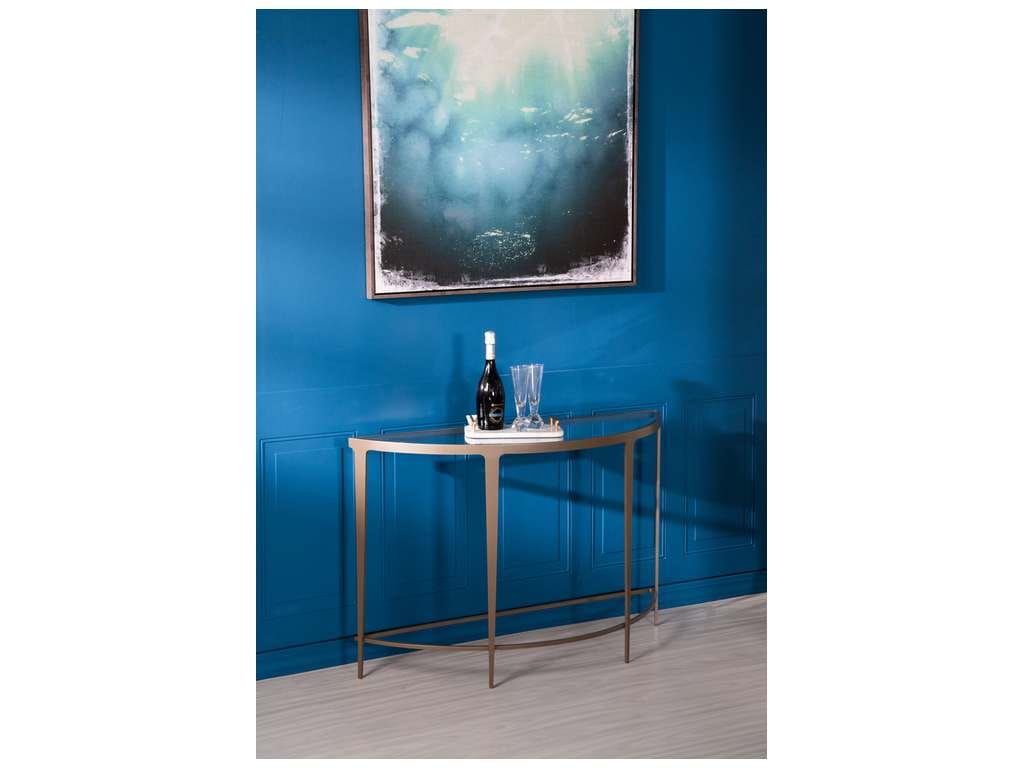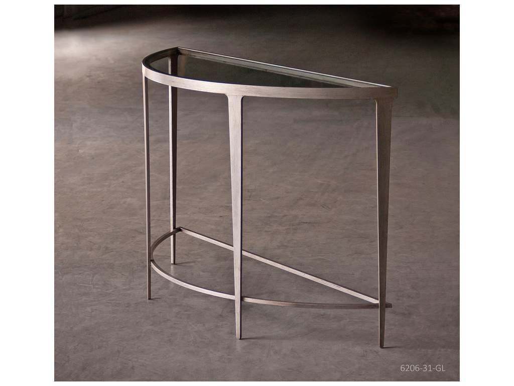 Product Description: Charleston Forge 6206 Console Roundabout Console - The Roundabout Console has a slender demi-lune Glass top that is elegantly supported by sleek tapered legs that match well with the Ellipse collection.
