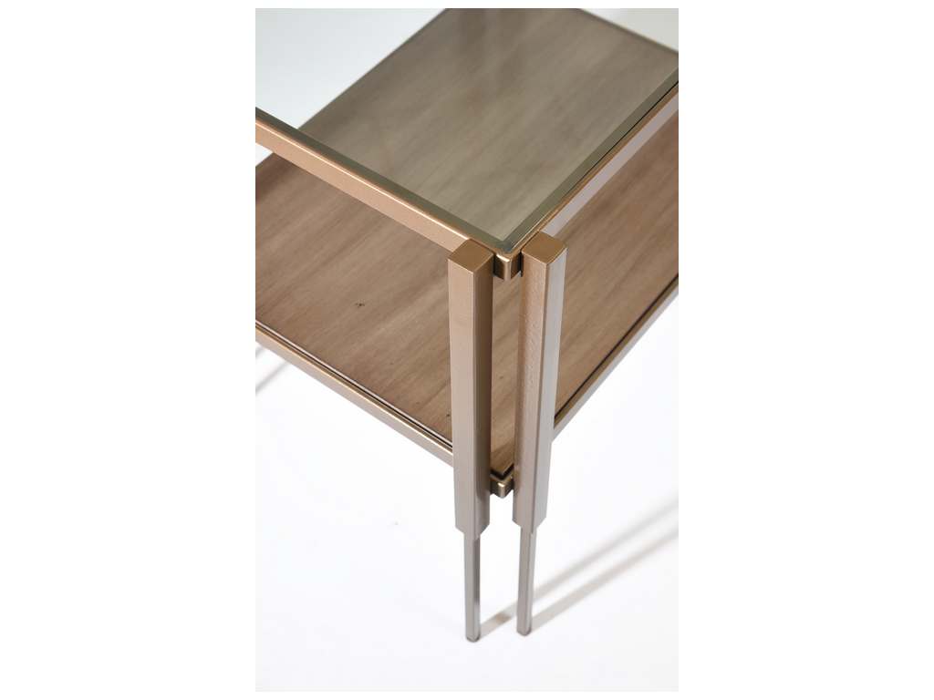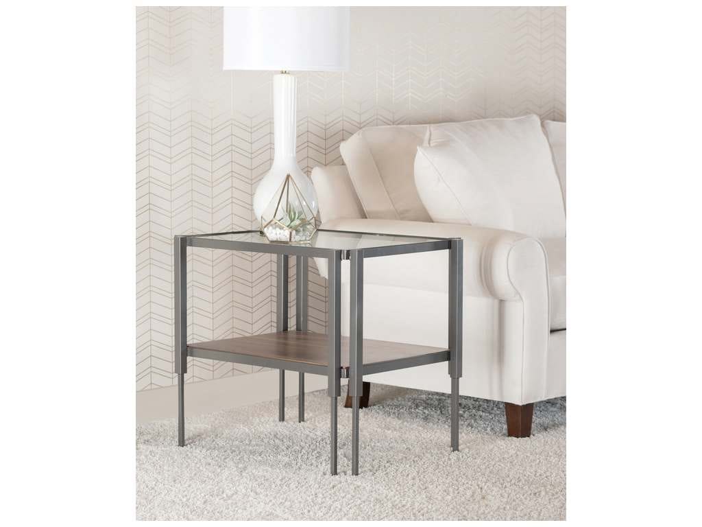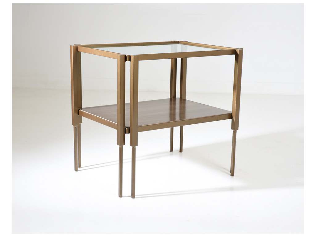 Product Description: Charleston Forge 6623 Crawford End Table - The art deco-inspired Crawford Collection was designed by Katy Acuff, a designer based in Savannah, GA. The table base is hand-built from solid steel. The top is always clear glass, the shelf can be glass, maple or walnut.