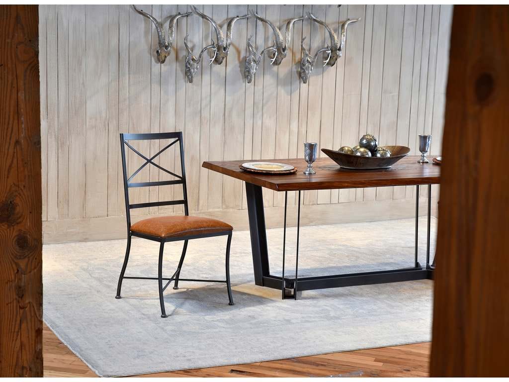 Product Description: Charleston Forge T735 Sutton Rectangular Dining Table 96 by 40 inch - With the Sutton Rectangular Dining Table, you can meld the contemporary with the rustic. The tandem legs angle out from the channeled base to support the top, that is available in the Live Edge, which incorporates the natural edge of the wood.
