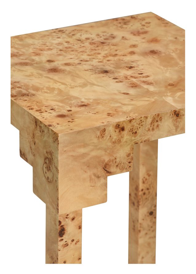 Product Description: Chelsea House 370042 Falls Pedestal Small - With its elegant pedestal base, the Falls Pedestal Table exudes a sense of timeless charm and graceful simplicity. Finished in a stunning light burlwood veneer that showcases the intricate patterns and rich tones of natural wood. Available in two sizes. Designed by Elizabeth Wicker.