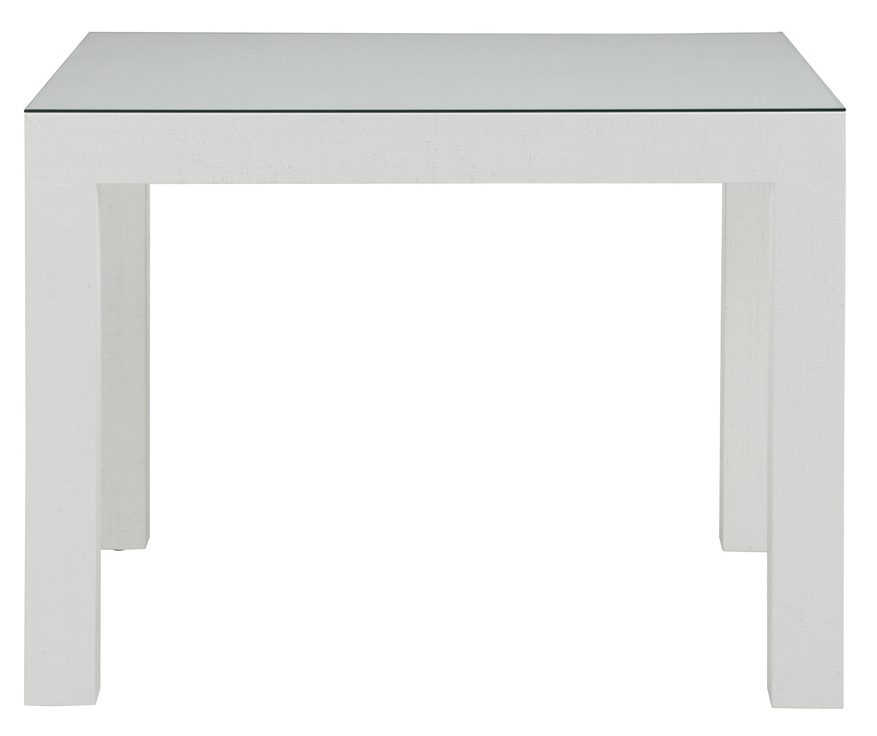 Product Description: Chelsea House 370063 Sanibel Game Table White - Classic lines make this white raffia wrapped game table easy to use in both modern and traditional interiors. Its crisp punch of white creates a fresh take on the classic Parsons table and will never go out of style. Designed by Jamie Merida.