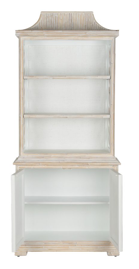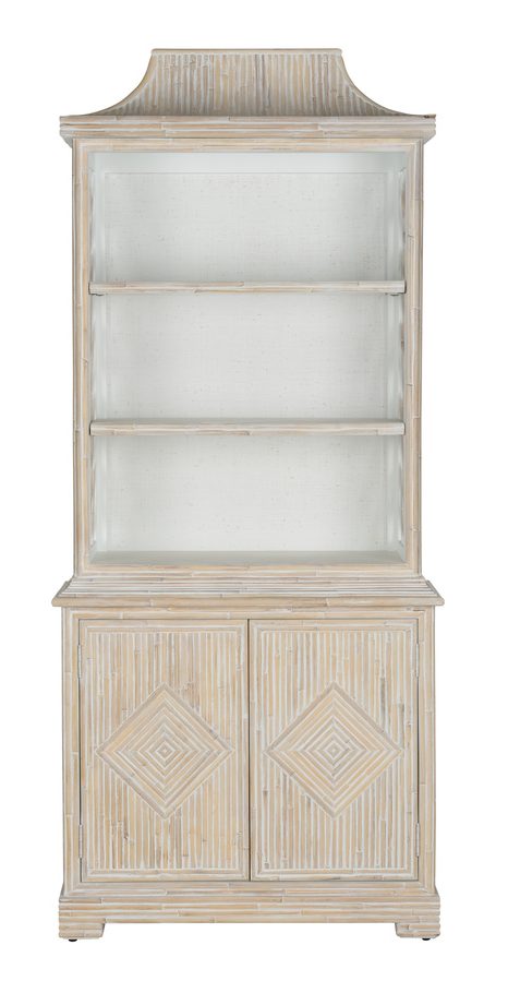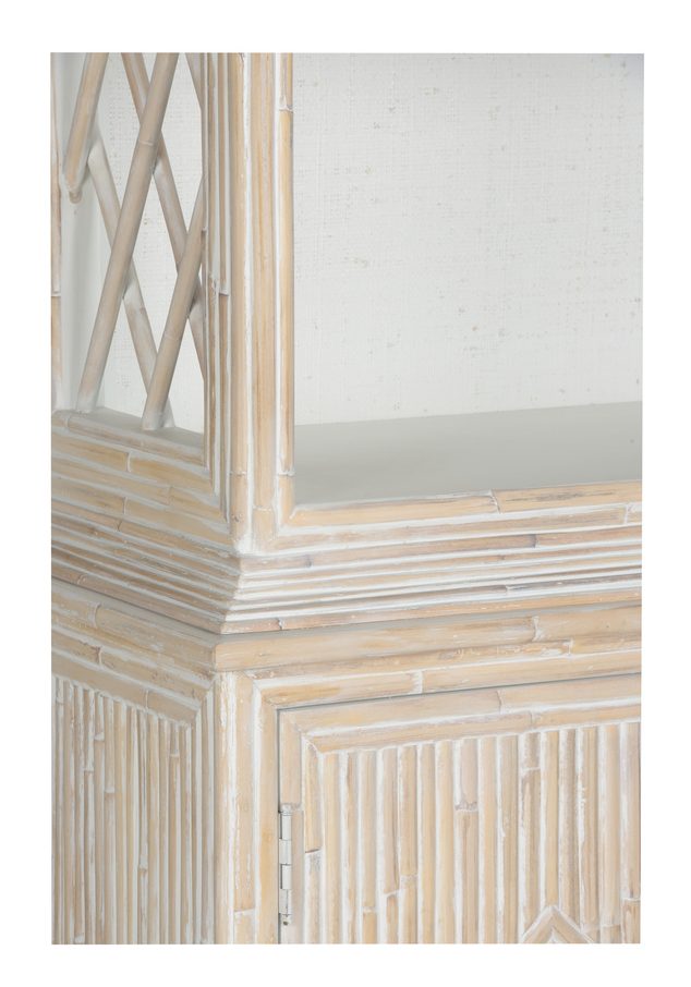 Product Description: Chelsea House 370247 Lyford Cay Bookcase - Whitewashed Bamboo Bookcase with white painted interior. Chinoiserie details and open fretwork make for a fresh take on traditional form. Designed by Jamie Merida