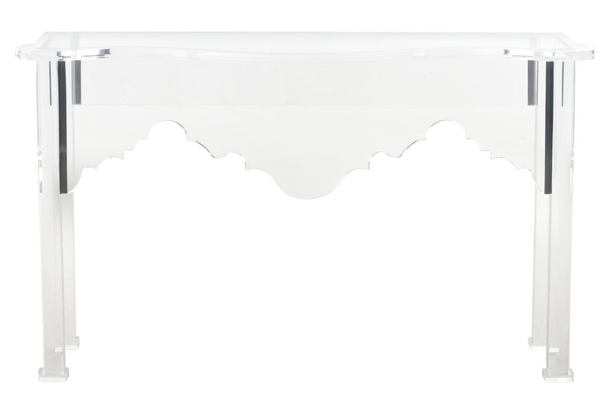 Product Description: Chelsea House 370391 Kensington Console Acrylic - Based on a George the 2nd design this is a fresh take on the original design. The raffia wrapped version is a classic example of taking a traditional form and making it modern. Acrylic version is a crisp version that works in a modern or traditional interior. Designed by Jamie Merida.