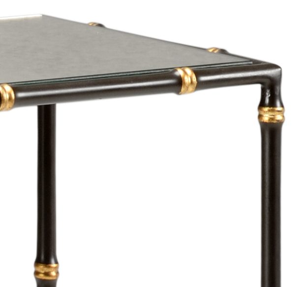Product Description: Chelsea House 384473 Saigon Console - Espresso and gold finished metal bamboo style base with an antique mirror top, designed by Jamie Merida.