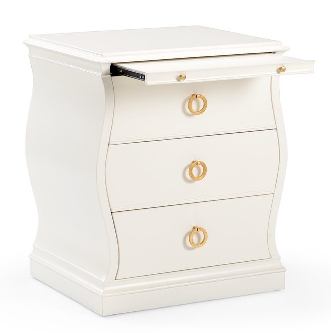 Product Description: Chelsea House 384732 Gail Drawer Chest - Adorable bedside chest with sweeping sides and gold leaf finished pulls. Not intended for clothing storage. Designed by Claire Bell.