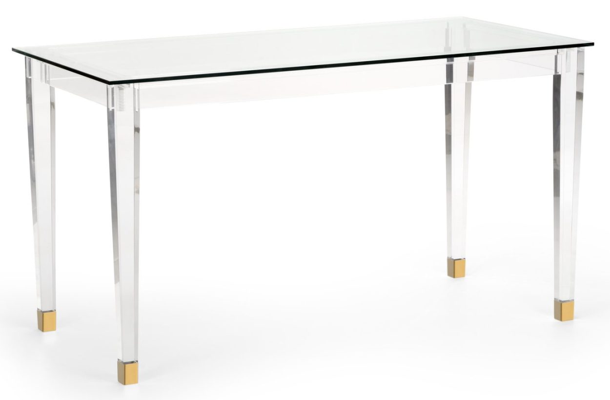 Product Description: Chelsea House 384967 Acrylic Denver Desk Brass - Denver desk with a brass finish and acrylic legs. Sleek and contemporary design. Ideal for a home office or workspace. Measures 48 inches in length, 24 inches in width, and 30 inches in height.