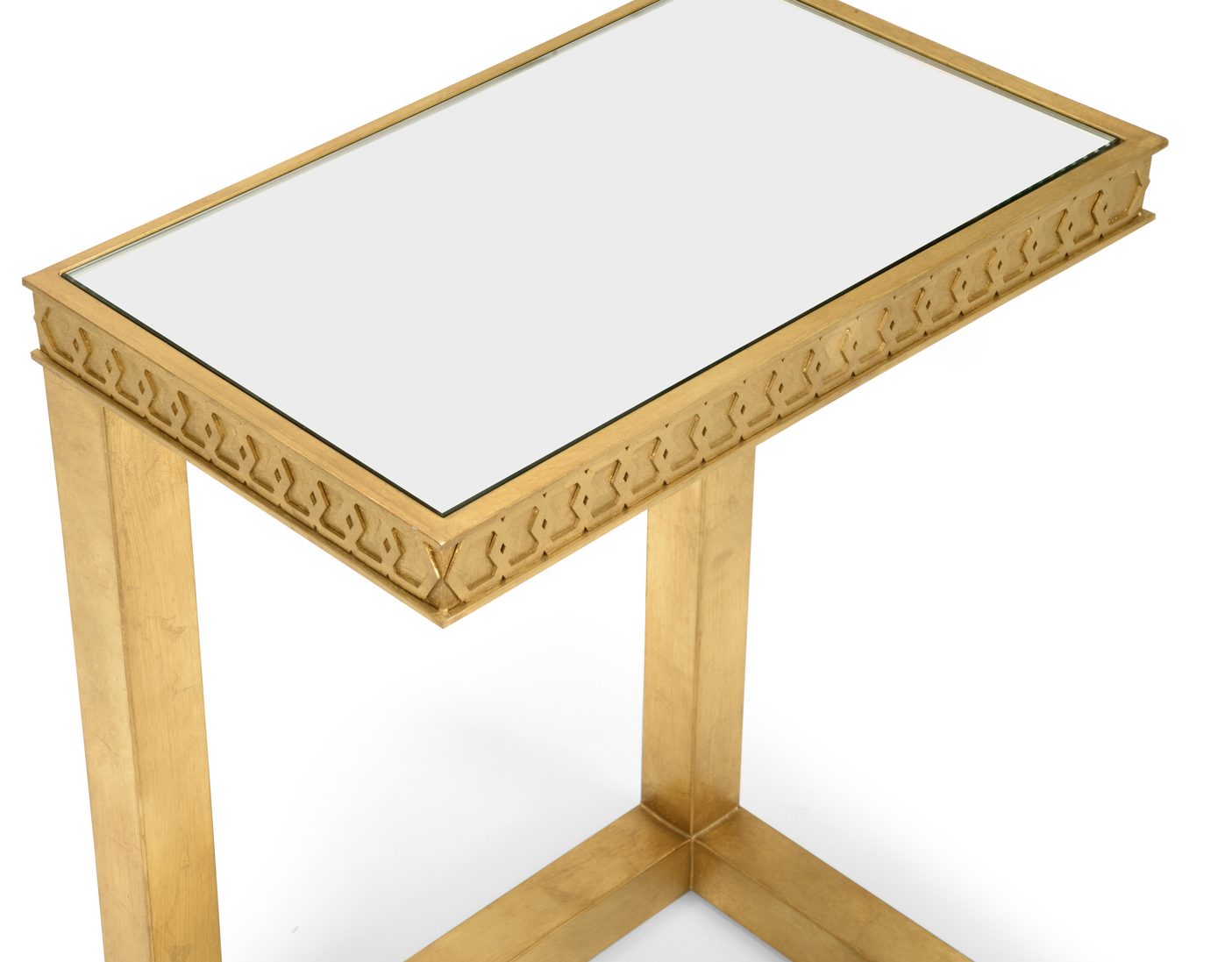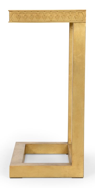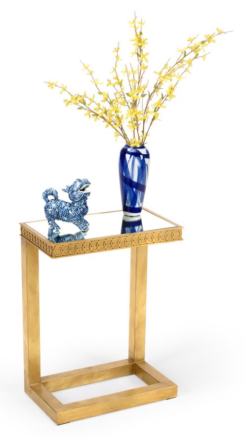 Product Description: Chelsea House 384986 Nemeth Cigar Table Gold - A masculine cigar table providing mobility for the gracious entertainer featuring a mirrored top and interlocking honeycomb pattern. Designed by Shayla Copas.