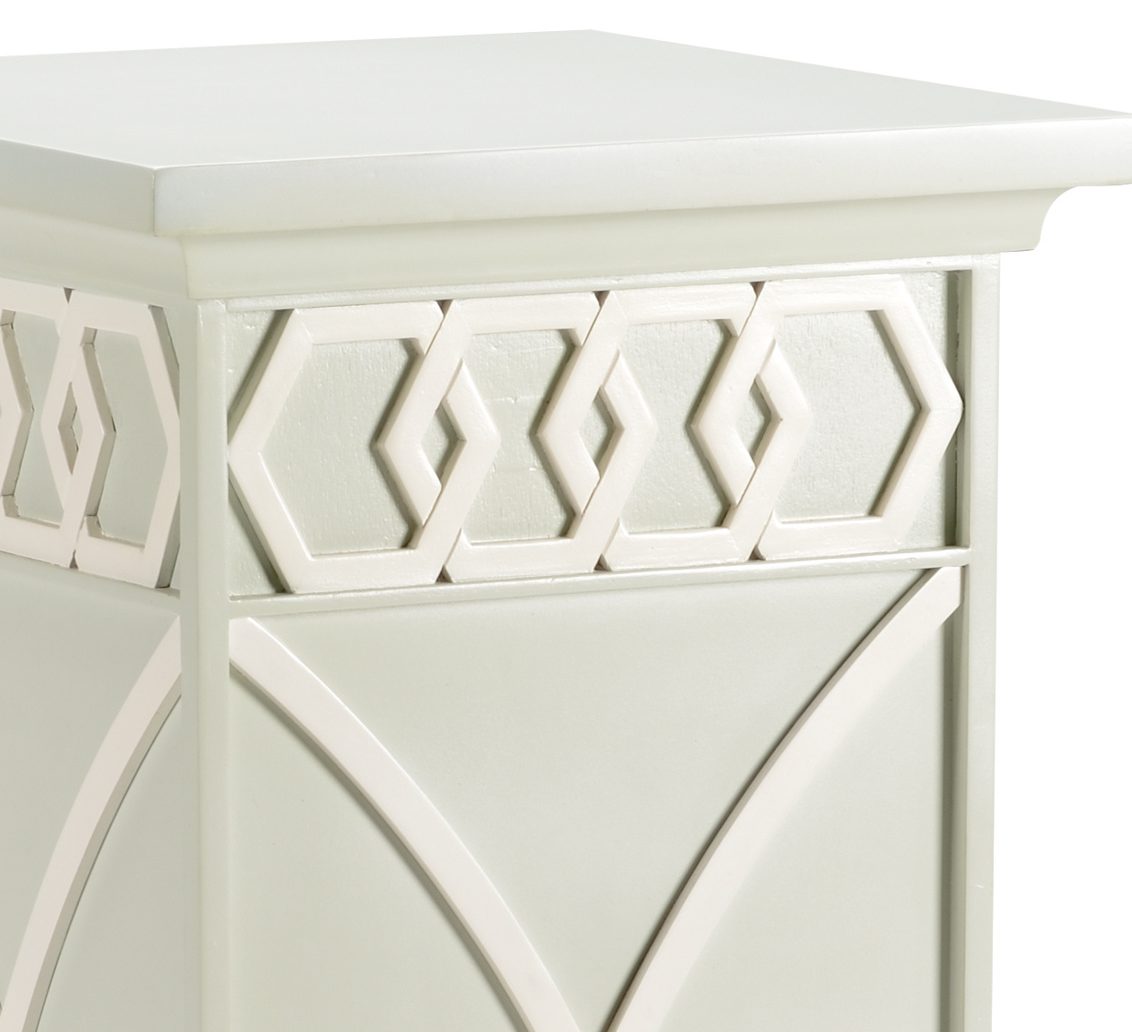 Product Description: Chelsea House 385011 Scottkins Pedestal Frostworks - A stunning pedestal featuring an interlocking honeycomb pattern and feminine lines. Available in a variety of colors. Designed by Shayla Copas.