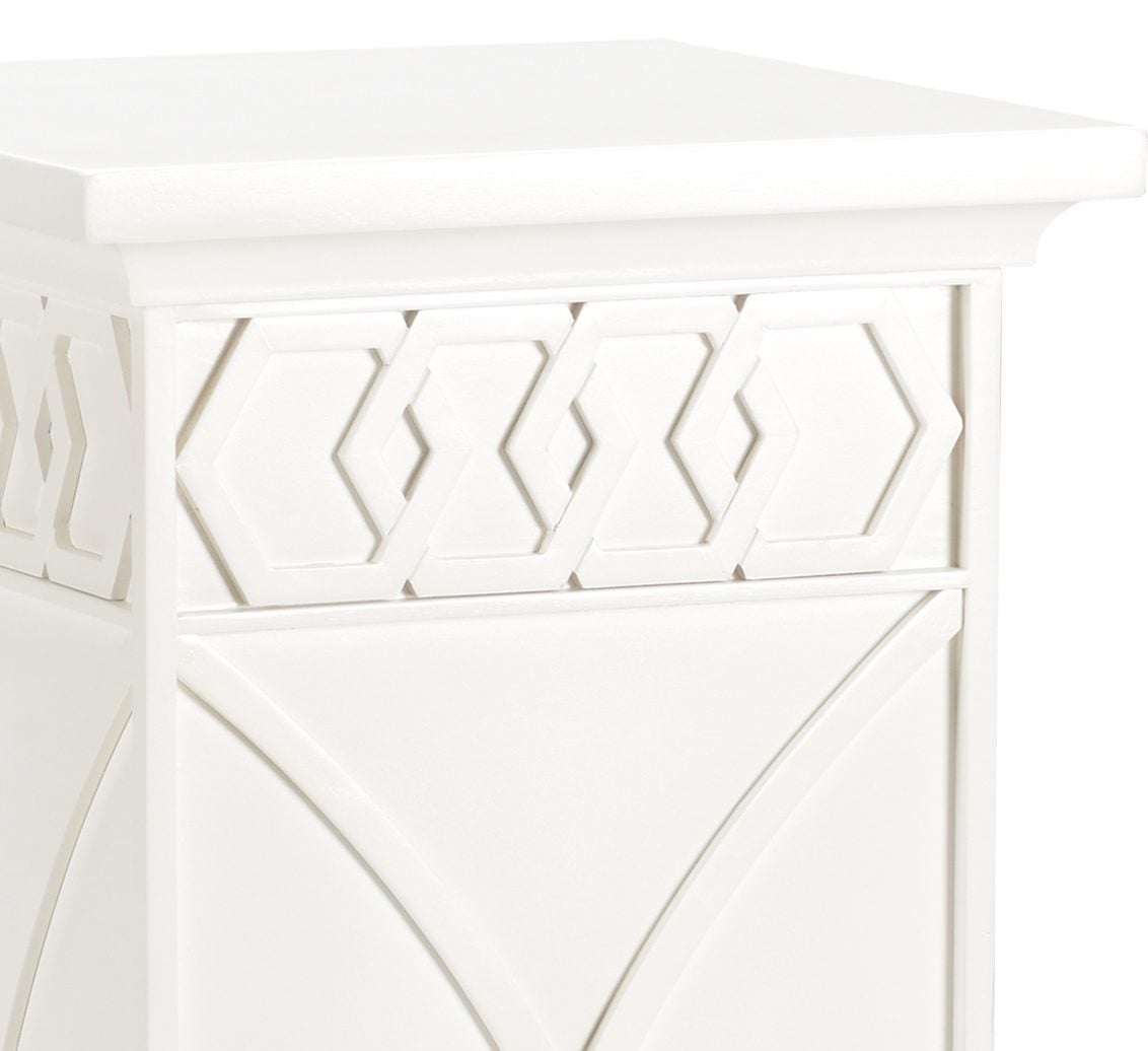 Product Description: Chelsea House 385012 Scottkins Pedestal White - A stunning pedestal featuring an interlocking honeycomb pattern and feminine lines. Available in a variety of colors. Designed by Shayla Copas.
